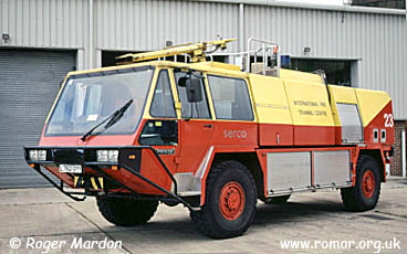 Serco, a private sector company, now operates the International Fire Training Centre, formerly known as the Civil Aviation Authority Training School, at Teesside Airport. This 1985 Chubb / Chubb Protector C3 crash tender (B71 WYT) was part of the fleet in 2004.