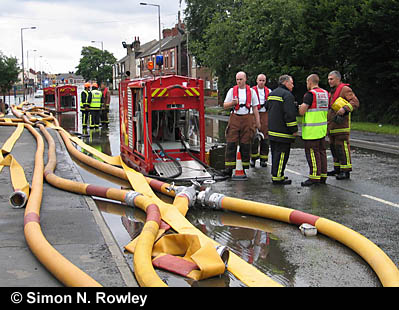 Toll Bar straddles the A19 Doncaster to Selby road and in excess of 90% of the village was flooded with depths up to waist deep. Simon's first priority was to find the Hampshire crews and, wearing their bright orange helmets, they stood out from the rest!