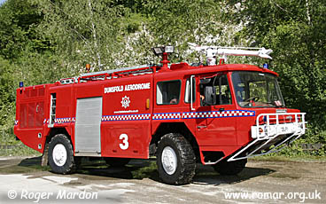 D113 LFX at Dunsfold Aerodrome, Surrey, is an ex-Royal Navy 1987 Scammell Nubian / Carmichael Mk.10C crash tender (64 RN 17).