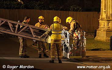 The ladder was pitched to provide access to the roof space at the west end of the cathedral. Firefighters had to negotiate the length of the roof void to reach the 'fire' at the east end of the building.