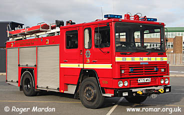 M775 WKC was refitted as a search & rescue appliance but when photographed in September 2009 was the reserve, having been replaced by the 1992 Dennis Rapier below.